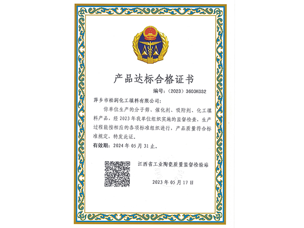 產品達標合格證書